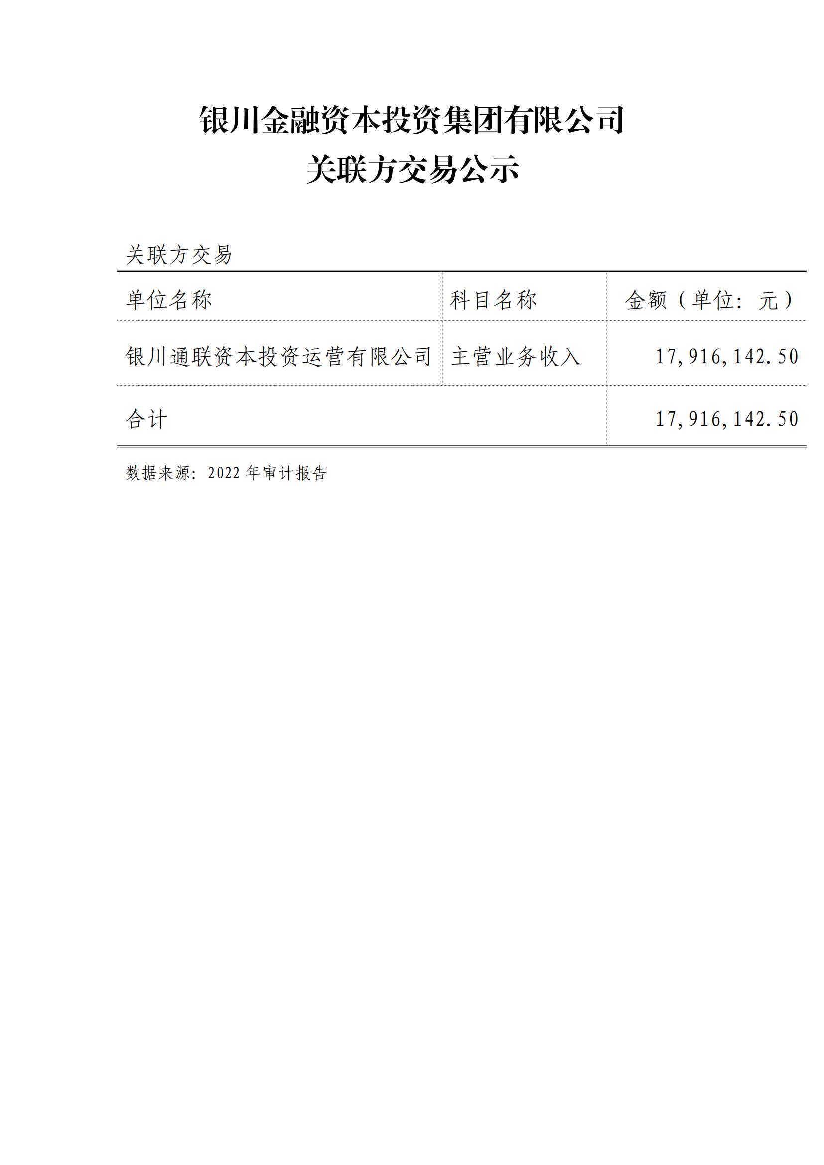 銀川金融資本投資集團有限公司關聯(lián)方交易